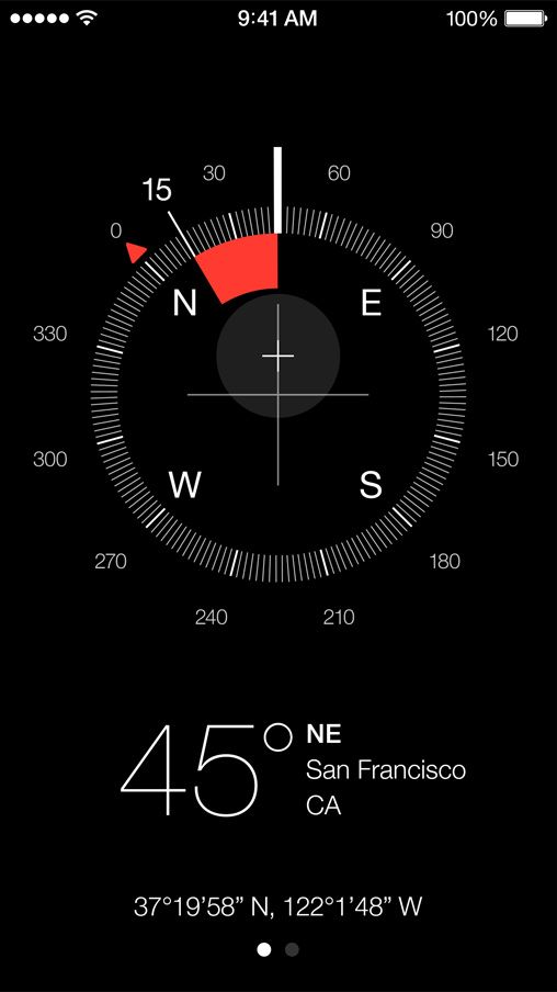 При запуске приложения в первый раз, появится сообщение, спрашивающее, разрешаете ли Вы приложению использовать его данные геолокации. После калибровки, Вы можете использовать компас, чтобы узнать свои точные координаты (долготу и широту), а также ориентацию Вашего iPhone относительно 4 кардинальных точек.