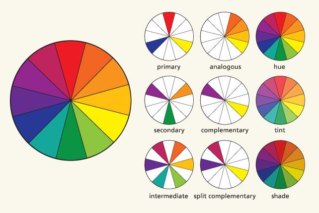 Помимо основных цветов, существует множество других цветовых схем, основанных на ассоциациях человеческих рецепторов. Это главные схемы.
