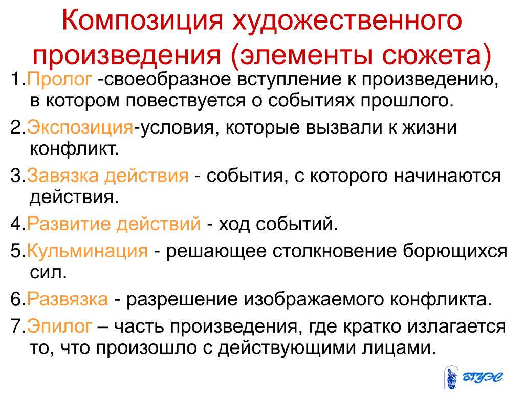 Элементы композиции в литературе традиционно делятся на следующие типы: