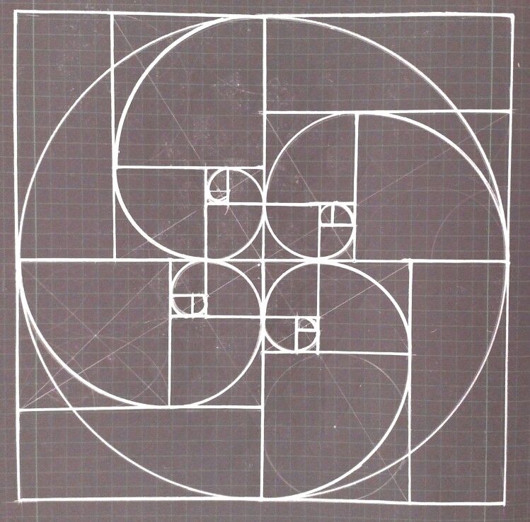 Когда мы рисуем спираль на основе прямоугольников золотого сечения, повторяющихся внутри больших прямоугольников золотого сечения,