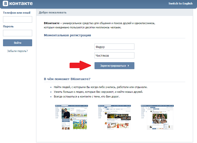 Для регистрации в социальной сети ВКонтакте зайдите на сайт
