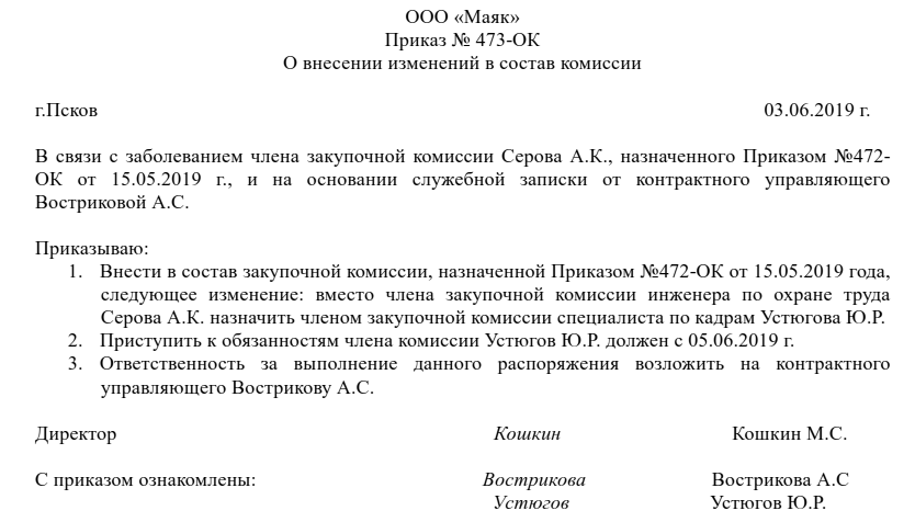 Выбор того или иного варианта преамбулы зависит от того, что является непосредственным поводом для издания приказа.