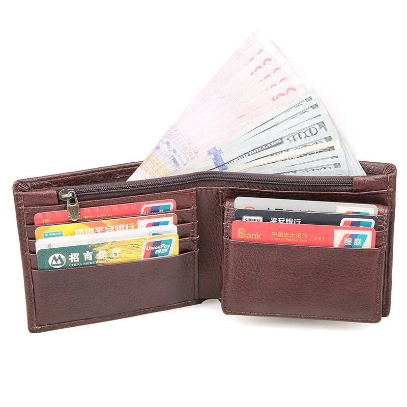 У этого бумажника красивая конструкция и он очень прочный. Это коричневая точечная кожа. Мне нравится его текстура, поэтому я его и взял. Это кошелек в стиле коробки. В комплекте не было зажима для денег, хотя он есть. На внешней стороне нет никаких особенностей, кроме отверстий для зажима для денег, который продается отдельно. Основная функция заключается в боксе, в котором предусмотрена возможность вставки карт. Также имеется рычажный механизм, который выталкивает карты. В целом, это очень простой кошелек, но в нем также есть несколько отличных элементов дизайна.