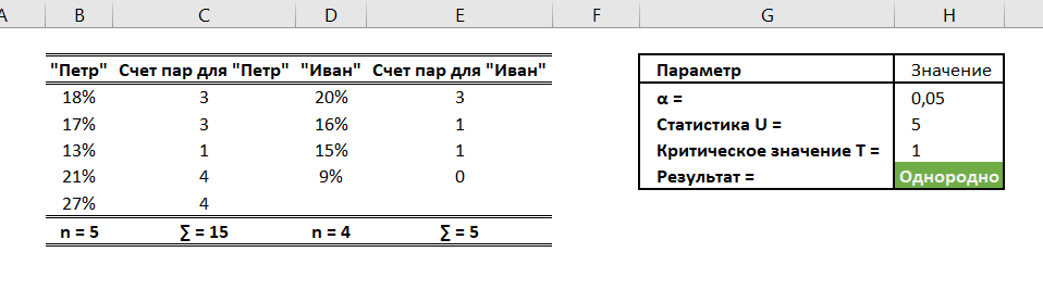 PlanetCalc, Манн-Уитни Тест