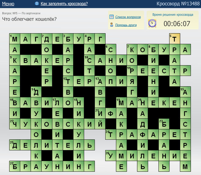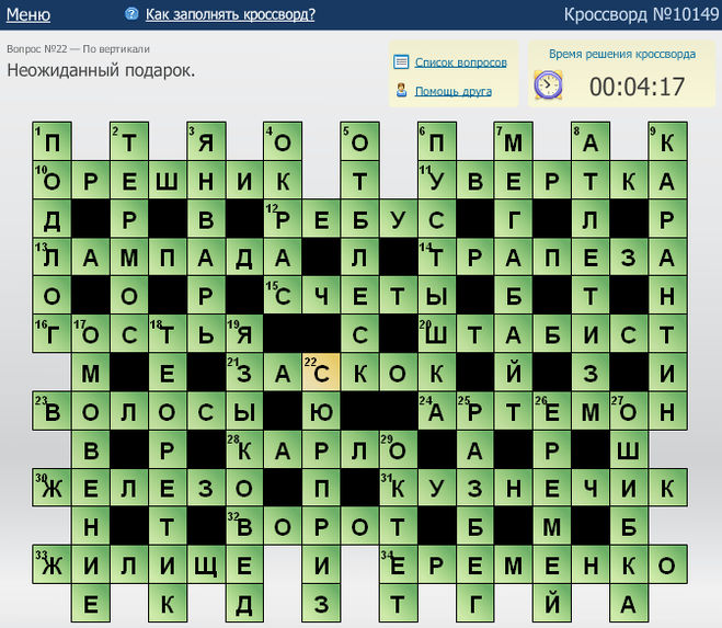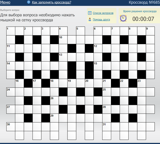 Рядом с кроссвордом будет ряд вопросов или подсказок, которые относятся к различным рядам или строкам клеток в кроссворде. Игрок читает вопрос или подсказку и пытается найти слово, отвечающее на вопрос, состоящее из того же количества букв, что и прямоугольники в соответствующей строке или строке кроссворда.