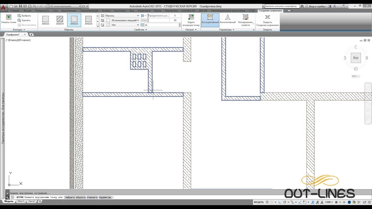 — Штриховка: штриховка одного, вложенных, нескольких объектов. Градиентная заливка. Свойства штриховки: ассоциативность, прозрачность, фон. Редактирование штриховки.