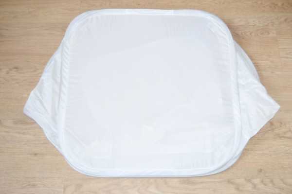 Как видите ткань куба вся помятая, но это абсолютно не важно, т.к на фото ее видно не будет. Ее главное предназначение пропускать через себя свет, делая его мягким, рассеивая его.