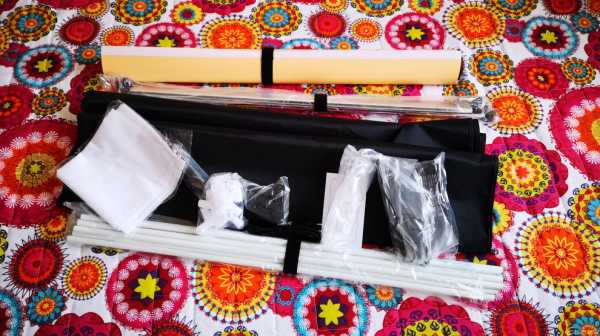 А в мешочке меня ждало… Счастье! А именно сам лайтбокс, сложенный так, что в жизни не догадаешься что из этого получится фотостудия, 6 фонов, увидев которые я сразу поняла что это г… плохого качества фоны, два проводка для ламп и инструкция как из всего этого сделать настольную фотостудию.