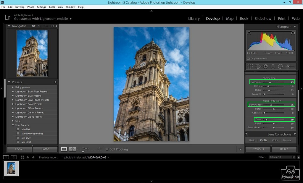 Сделаем пресет, с помощью которого будем готовить фотографии к публикации в интернете.