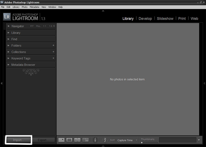 Перед стартом файлы нужно импортировать, то есть добавить в виртуальный каталог Adobe Lightroom. В нём содержатся записи о снимках, хранящихся на жёстком диске. С помощью каталога программа может «запомнить», какие настройки были применены к тому или иному файлу. Каталог позволяет сортировать файлы, добавлять их в виртуальные коллекции, присваивать метки — цветовые, рейтинги, флажки.