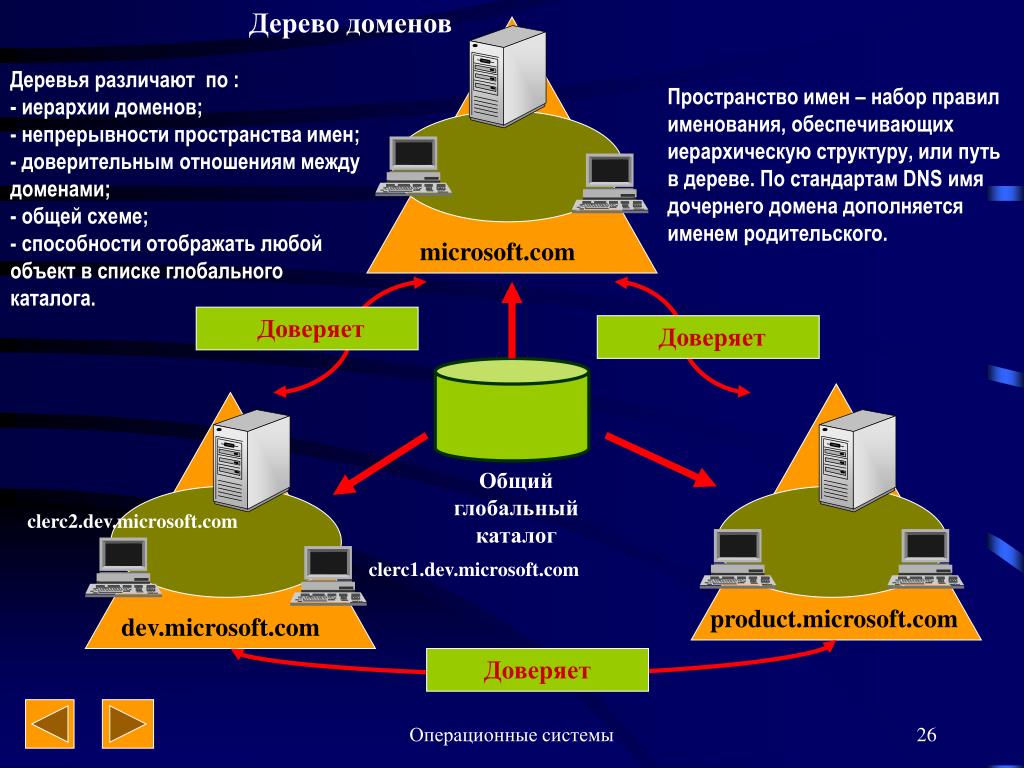 Для доступа к этим общим ресурсам пользователи из одного домена должны пройти проверку подлинности в другом домене. Чтобы обеспечить эти возможности проверки подлинности и авторизации для клиентов и серверов в разных доменах, между двумя доменами должно быть установлено доверие.