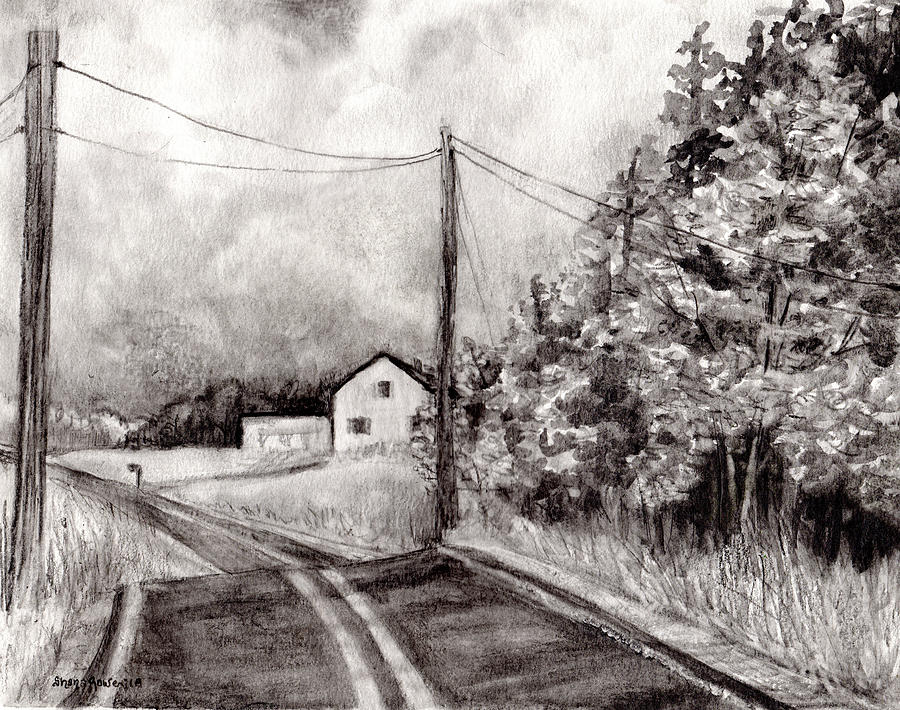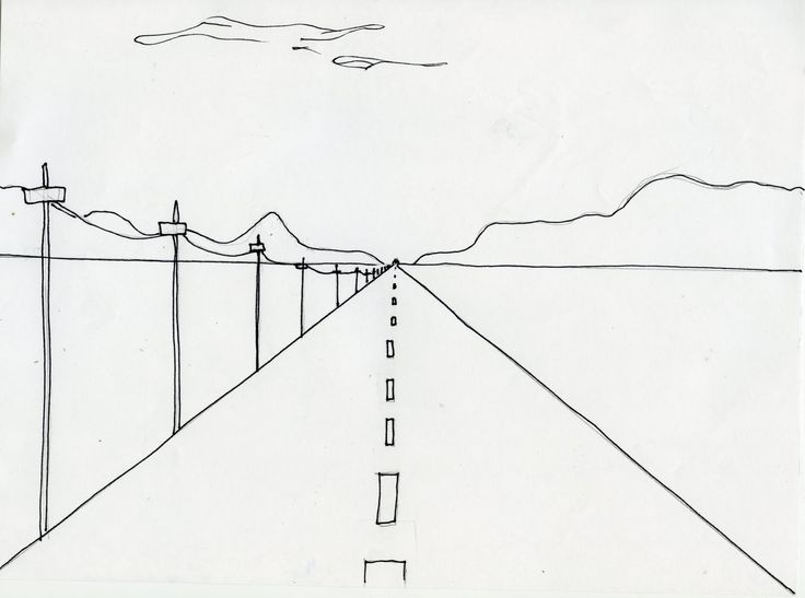 Точку, где рельсы или края дороги соединяются, называют » точкой схода » или » точка зрения «. Эта точка всегда лежит на линии горизонта.
