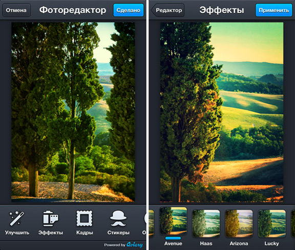 Сервис привлекает внимание шестью сотнями различных эффектов и рамок. Интерфейс редактора похож на Photoshop.