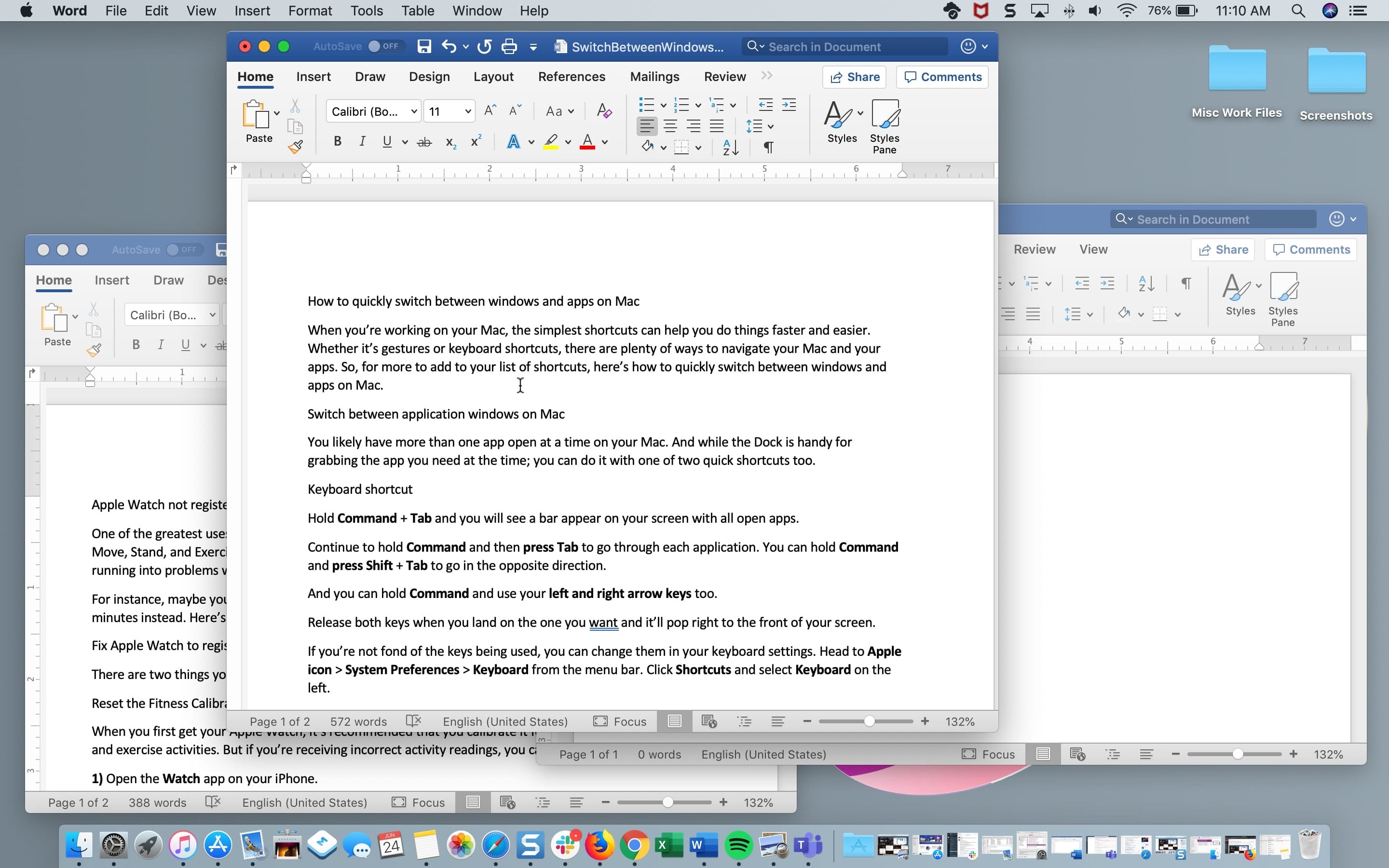 Когда дойдёте до нужного, отпустите клавиши.Вы также можете использовать жест трекпада, описанный выше, но вы будете видеть все открытые окна всех программ.