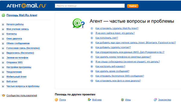 Help — Функциональные возможности Агент Mail.ru