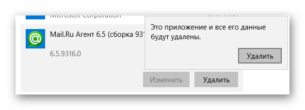 Способ 5: Переустановите Mail.ru Agent 5.9 Build 4848 для удаления.