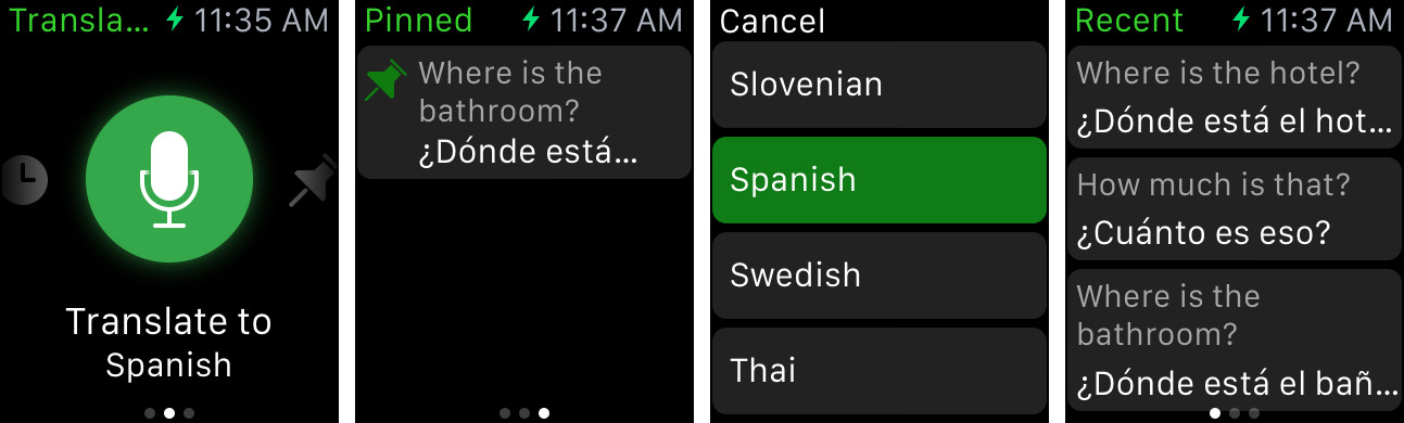 • Говорите в Apple Watch, чтобы получить мгновенный перевод