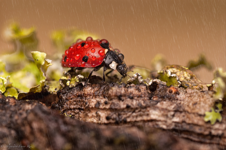Джейми Спенсли хватило черной куртки в качестве единственного фона, чтобы в деталях запечатлеть завораживающую белую снежинку. Столь мягкого освещения ему удалось достичь с помощью рассеивателя для макросъемки. «Это конус из белого материала, который оборачивается вокруг передней части объектива. Более того, на вспышку установлена трубка из отражающего свет материала, что помогает свету достичь конуса. В результата освещение получается очень мягким, что идеально подходит для макросъемки.