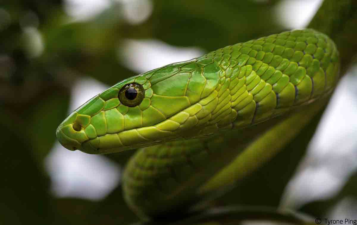 В отличие от многих других ядовитых змей, черные мамбы имеют круглые зрачки.
