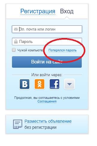 - Вход можно осуществить через социальные сети.