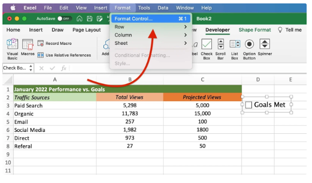 #2 – Чтобы рассчитать рост, нам нужно будет вычесть значения одного месяца из предыдущего месяца, чтобы выбрать диапазон ячеек от B3 до B7.