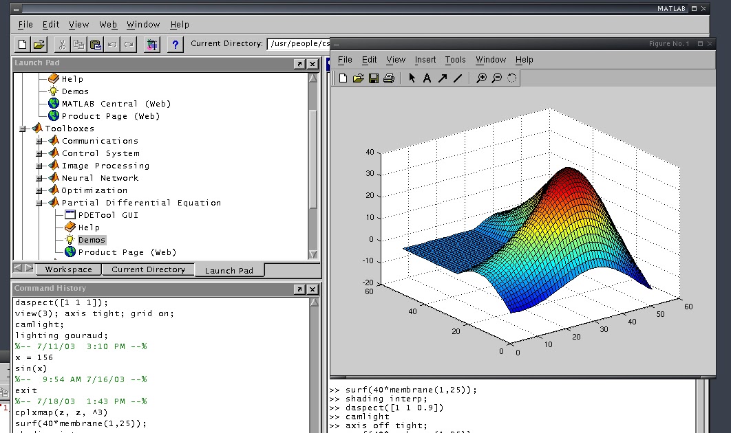 - Он имеет отличный набор графических инструментов для 2D- и 3D-графики (на самом деле другие языки, такие как Python, пытались скопировать и перепроектировать графические инструменты и команды, доступные в MATLAB).