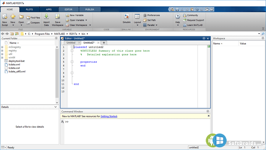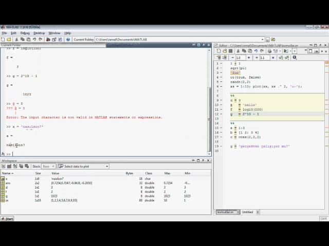 - редактор сценариев : здесь вы можете создавать новые или открывать/редактировать существующие файлы MATLAB.