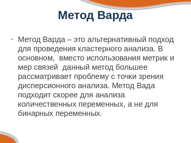 ЧТО ТАКОЕ МЕТОД УОРДА?
