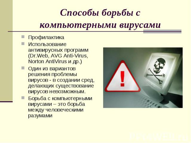 Способы защиты от компьютерных вирусов