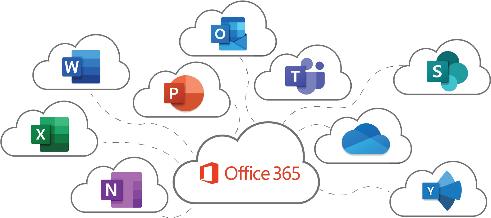 Microsoft Office 365 соединяет в себе возможности знакомых приложений Office с электронной почтой (на платформе Exchange Online), совместным использованием документов (на платформе SharePoint Online ) и обменом мгновенными сообщениями и видеоконференцсвязью бизнес-уровня (на платформе Skype for Business Online).