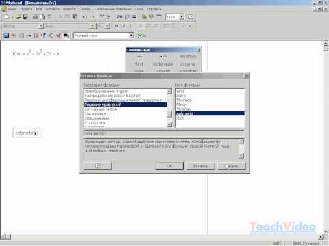 Примечание. Корень и поликорень могут решать только одно уравнение с одним неизвестным и всегда возвращают числовые ответы. Чтобы решить уравнение символически или найти точный численный ответ в терминах элементарных функций, используйте ключевое слово решения или выберите «Переменная» > «Решить» в меню «Символика». См. главу 13, «Вычисление символов».