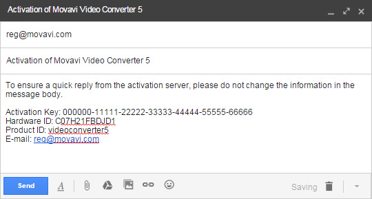 На устройстве, у которого есть доступ в Интернет, создайте новое письмо. В поле для текста письма вставьте информацию из диалога активации. Затем отправьте созданное письмо на адрес [email protected].