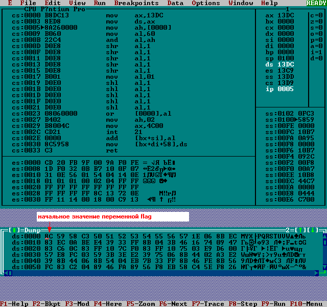 2 / (a + b). Все операнды со знаком. Размер a – слово, размеры b – байт, размер m – двойное слово. После компиляции откройте программу в Turbo Debugger, выполните все строки и проверьте, какое значение записалось по адресу переменной m. Результат отправьте в комментарии к уроку.