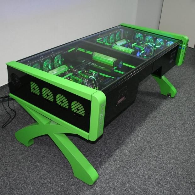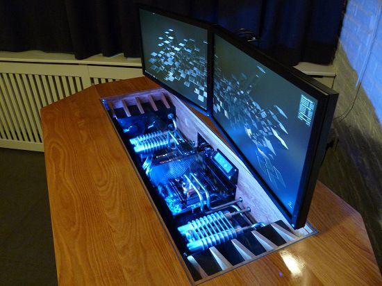 Все дело в воздушном потоке. Компьютерам нужно пространство, чтобы дышать, иначе они перегреются и умрут. Размещение компьютера под столом будет способствовать всасыванию воздуха (а вместе с ним и пыли), и не будет места для его удаления.
