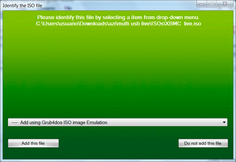- Поясните для Xboot, что это файл стоит воспринимать как универсальный — Add using Grub4dos ISO image Emulation.Указываем тип Add using Grub4dos ISO image Emulation