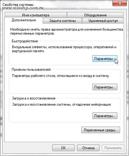 Рис. 2.55. Окно редактирования свойств системы, вкладка Дополнительно