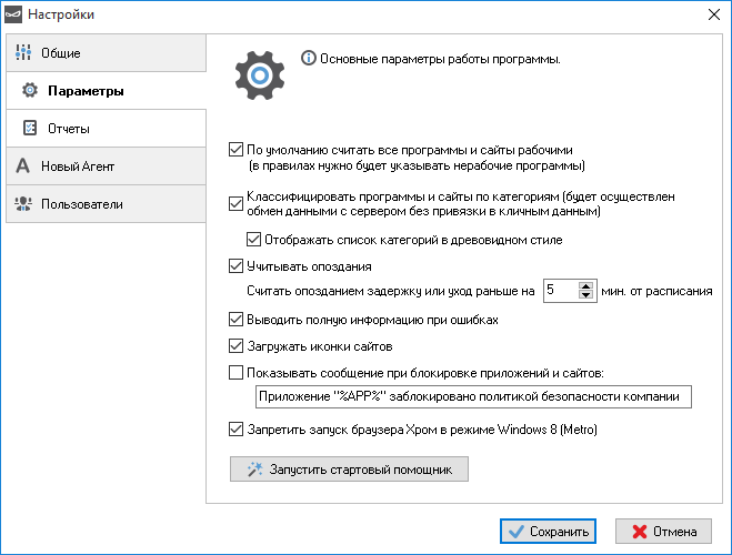 Для перехода в режим настройки параметров программы выполните команду главного меню Сервис ? Параметры.