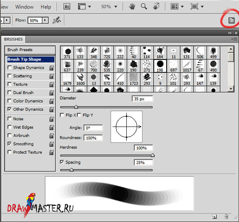 Отмечу, что Hardness 100 % и Spacing 25%.