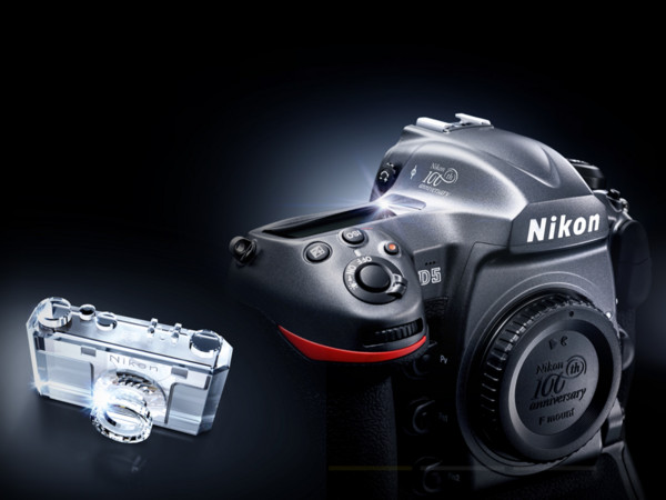 D5 — флагманская цифровая зеркальная фотокамера Nikon. Он поддерживал работу профессиональных фотографов в таких областях, как пресса, спорт и фотография природы, а также помогал в деятельности, связанной с изучением и исследованием космоса. D5 100th Anniversary Edition, в которой воплощено наследие флагманской модели, имеет темно-серую отделку цвета металлик и штамп на днище, отмечающий вклад компании Nikon в изучение и освоение космоса. Также включен юбилейный буклет с подробным описанием вклада Nikon в изучение и освоение космоса.