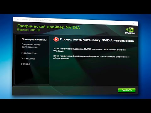 На компьютере появляется ошибка. Распространенными сообщениями являются «данный графический драйвер NVIDIA несовместим с этой версией Windows», «Ошибка программы установки NVIDIA», «Установка драйвера GeForce Game Ready не может быть продолжена», «Программа установки NVIDIA не может быть продолжена» и т. д.