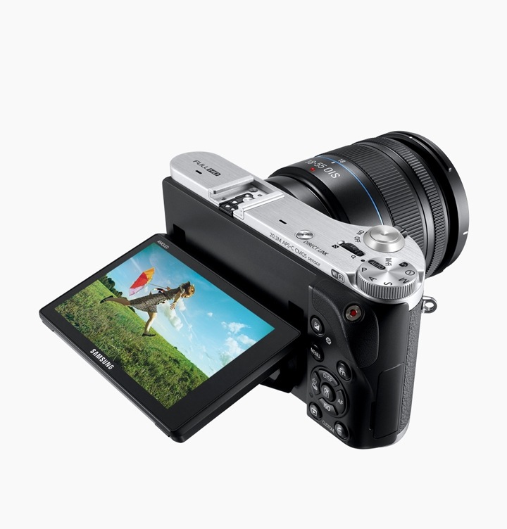 Как и смартфон Galaxy S4, NX300 имеет сенсорный экран AMOLED — 3,3-дюймовый с разрешением 768 тыс. Точек. Он также шарнирный, поэтому его можно отодвинуть от корпуса камеры и повернуть вокруг своей оси для просмотра как под высоким, так и под низким углом — очень полезная функция, например, для съемки над головами толпы.