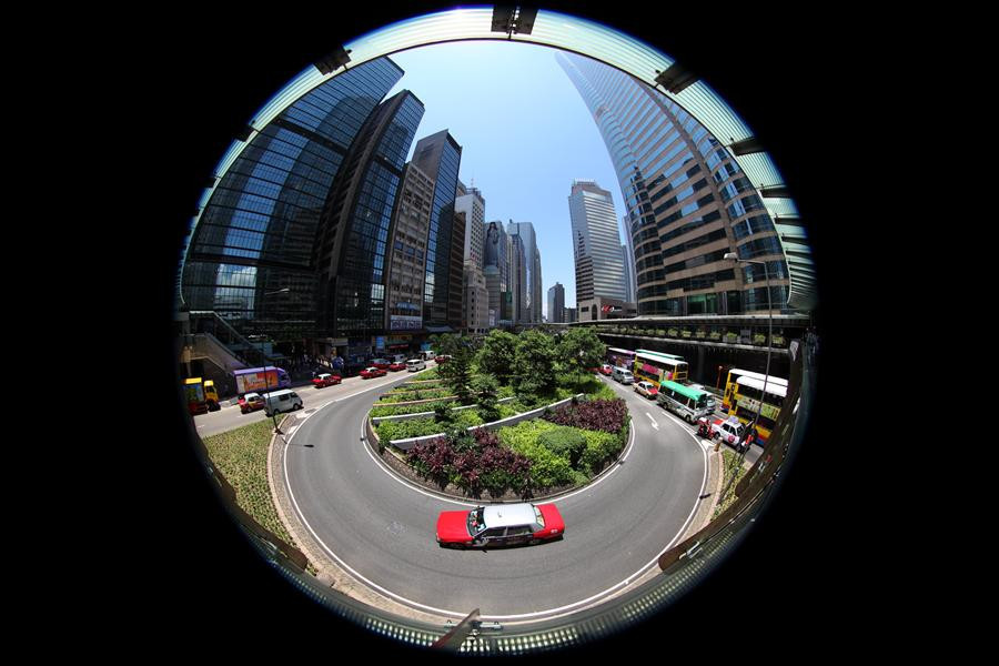 Следующий кадр Гонконга со слегка искаженными зданиями хорошо работает в сочетании с изогнутыми формами дорог: