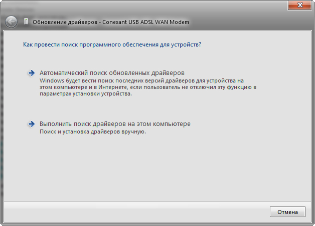 - Появится всплывающее окно с вариантами выбора между « Автоматический поиск обновленного программного обеспечения драйвера» и « Поиск на моем компьютере программного обеспечения драйвера ».