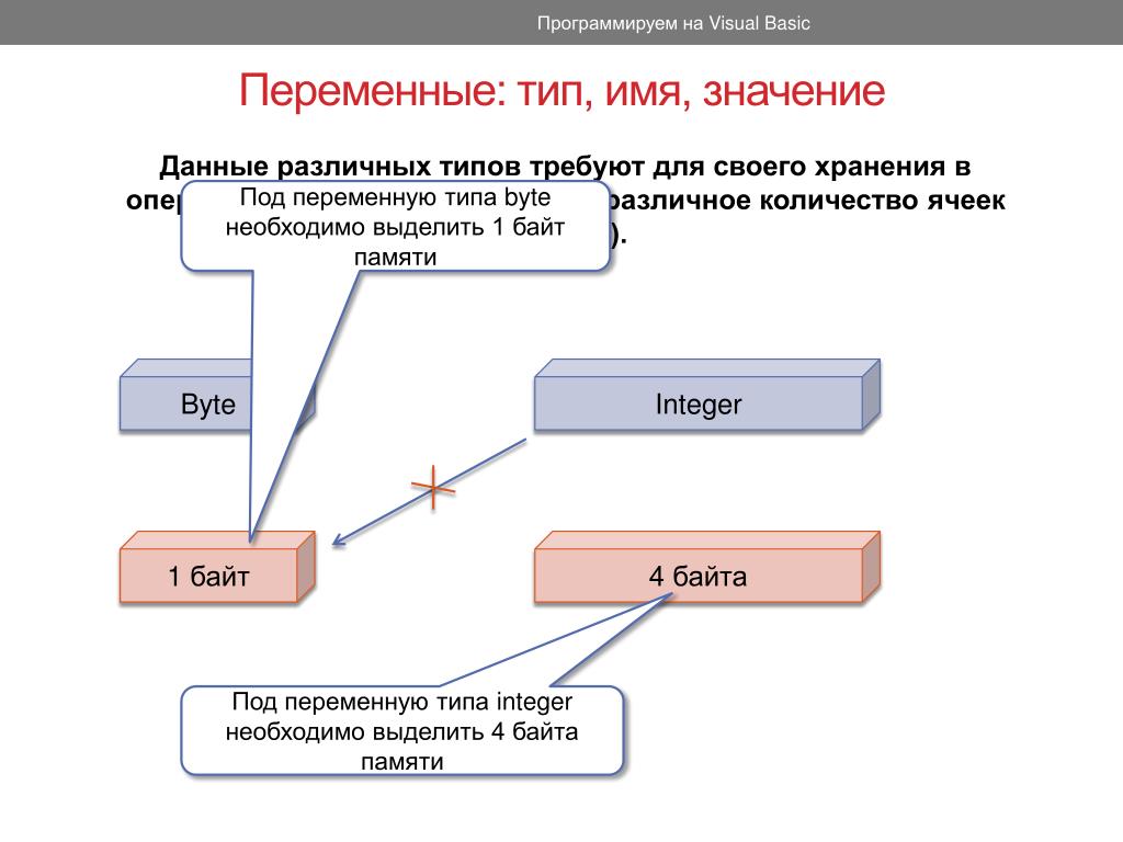 Sub4 VBA_Variable() Тусклая память Память = 123123 Память MsgBox и «байты» Концевой переходник