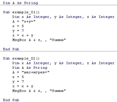 Sub VBA_Variable4() Тусклая память Память = 123123 End Sub