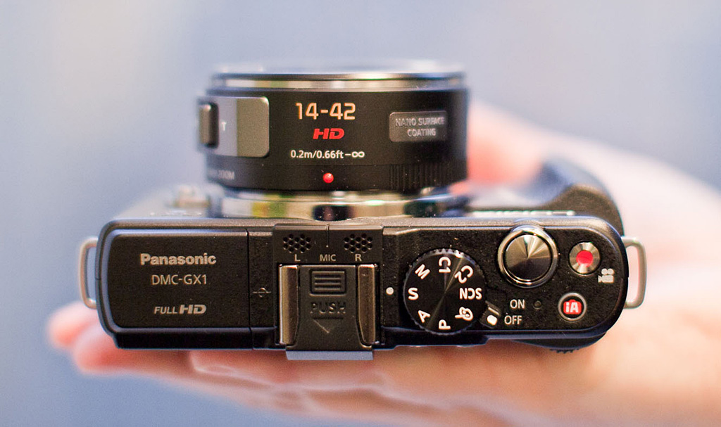 На верхней панели камеры расположены монофонический динамик, антенна GPS, индикатор состояния GPS, стереомикрофон, регулятор режимов съёмки, кнопка затвора с рычажком трансфокатора, отдельная кнопка включения видео, выключатель.