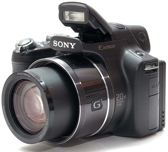 На верхней части корпуса HX200V расположена встроенная вспышка и большой стереомикрофон. Горячий башмак для внешних вспышек в модели не предусмотрен.