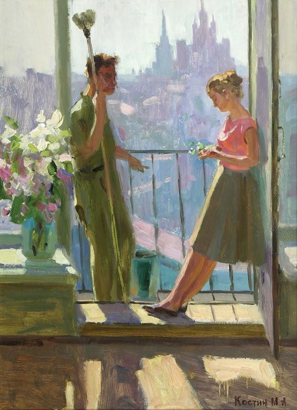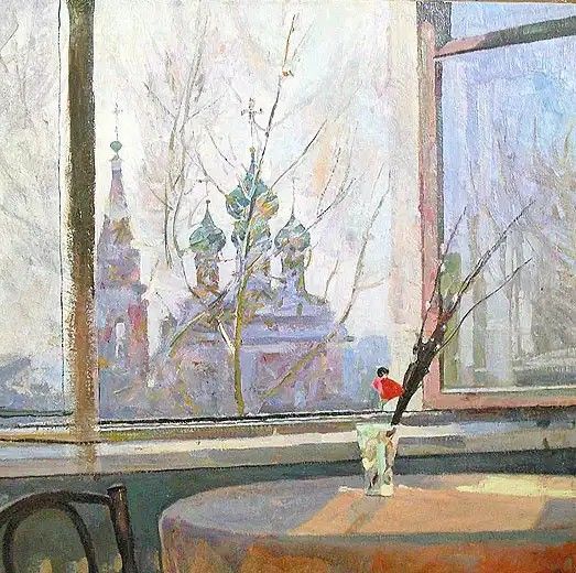 - Соберите изображения картин художника с видом из окна. Например,