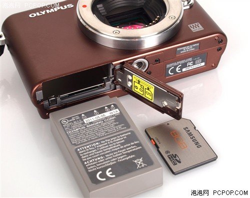 Физический размер корпуса Olympus E-PM1 по сравнению с кредитной картой и батареей AAУплотнение погоды