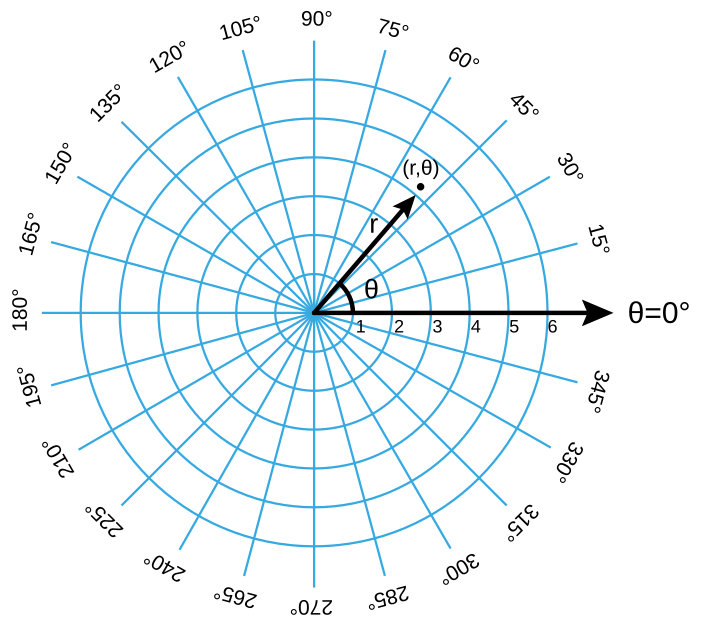 слева направо и сверху вниз соответственно. Это сферическая система координат. Точно так же для двумерной круговой плоскости вы можете определить r как расстояние от центра и использовать угол θ , чтобы узнать, как далеко она находится от заранее заданного направления.Они называются плоскими полярными координатами.